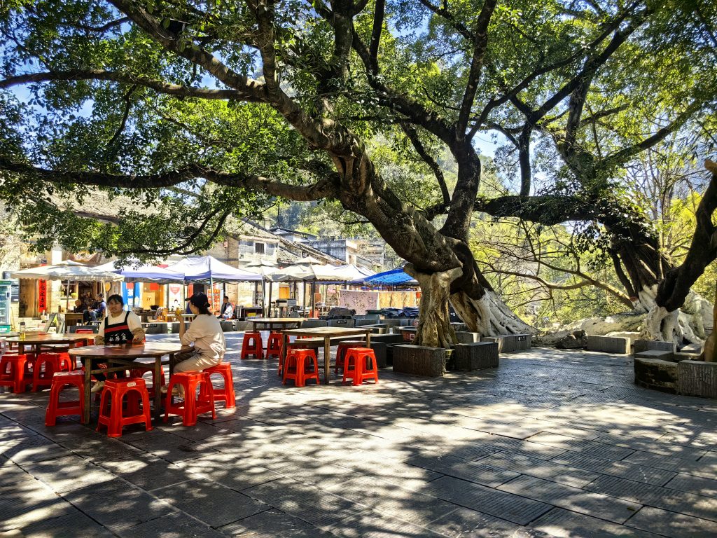 位于古镇中部的一个小广场,被树荫遮盖,可点茶水小憩,也有本地居民在此闲谈,如果这里不是景区该多好啊,很多人的童年一定是在这里度过的,恐怕以后不会了。时代的变迁,多少人的家成为了别人景区,这件事挺矛盾的,对吗?