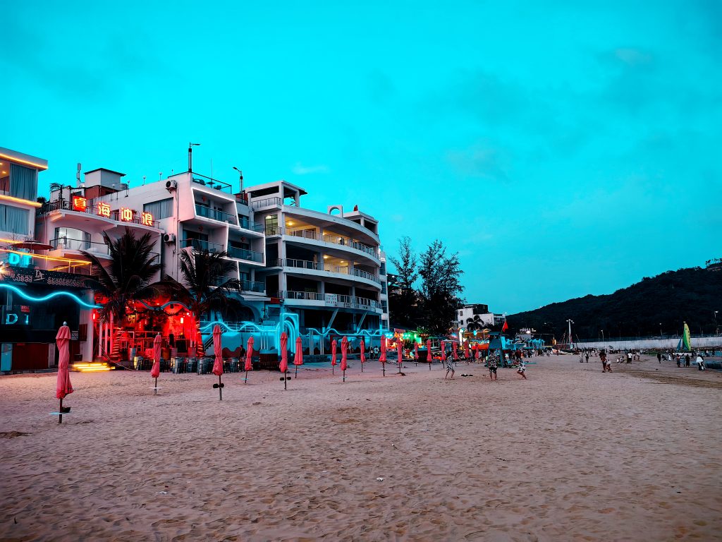 后海村很热闹,旺季可能更了不得,基本上所有当地村民的房屋都改成了商铺,不临街的就改成民宿。街头看不到几位老年人,全都是年轻人,白天冲浪,晚上酒吧,这么高强度的生活,也只能年轻人能够做到了。沿着海岸有一些民宿,价格不菲,但装修和位置还是值得价格的,可以一试。
