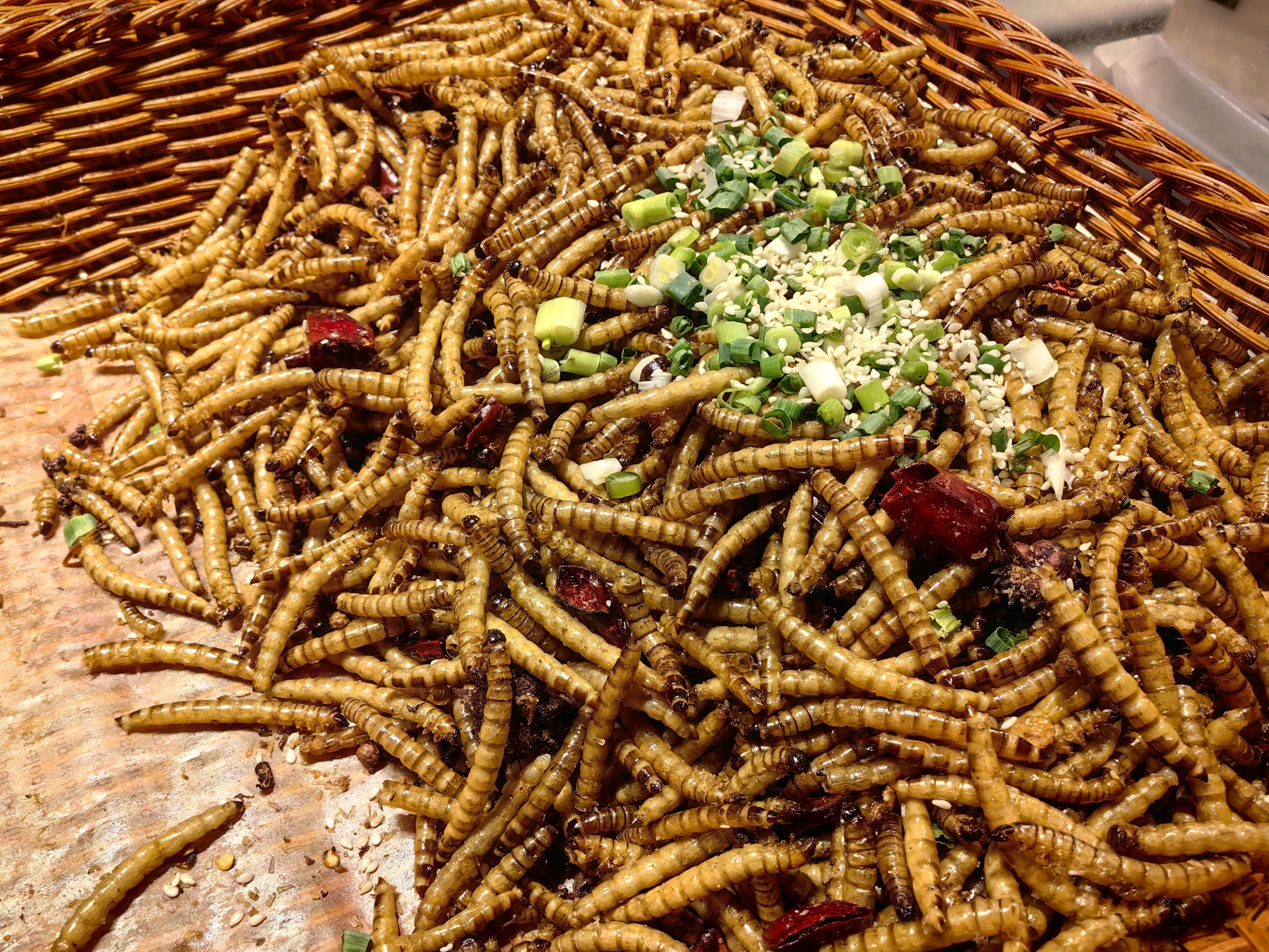 这看起来像是面包虫吧?当然我并没有吃,只是拍了一张照片而已。